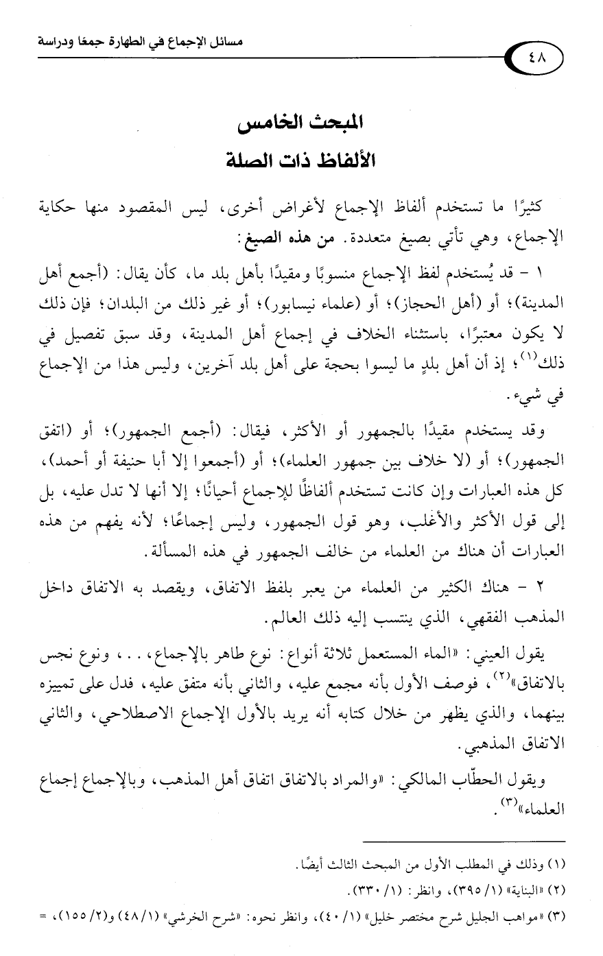 (¬3) "مواهب الجليل شرح مختصر خليل" (1/ 40)، وانظر نحوه: "شرح الخرشي" (1/ 48) و (2/ 155)، =