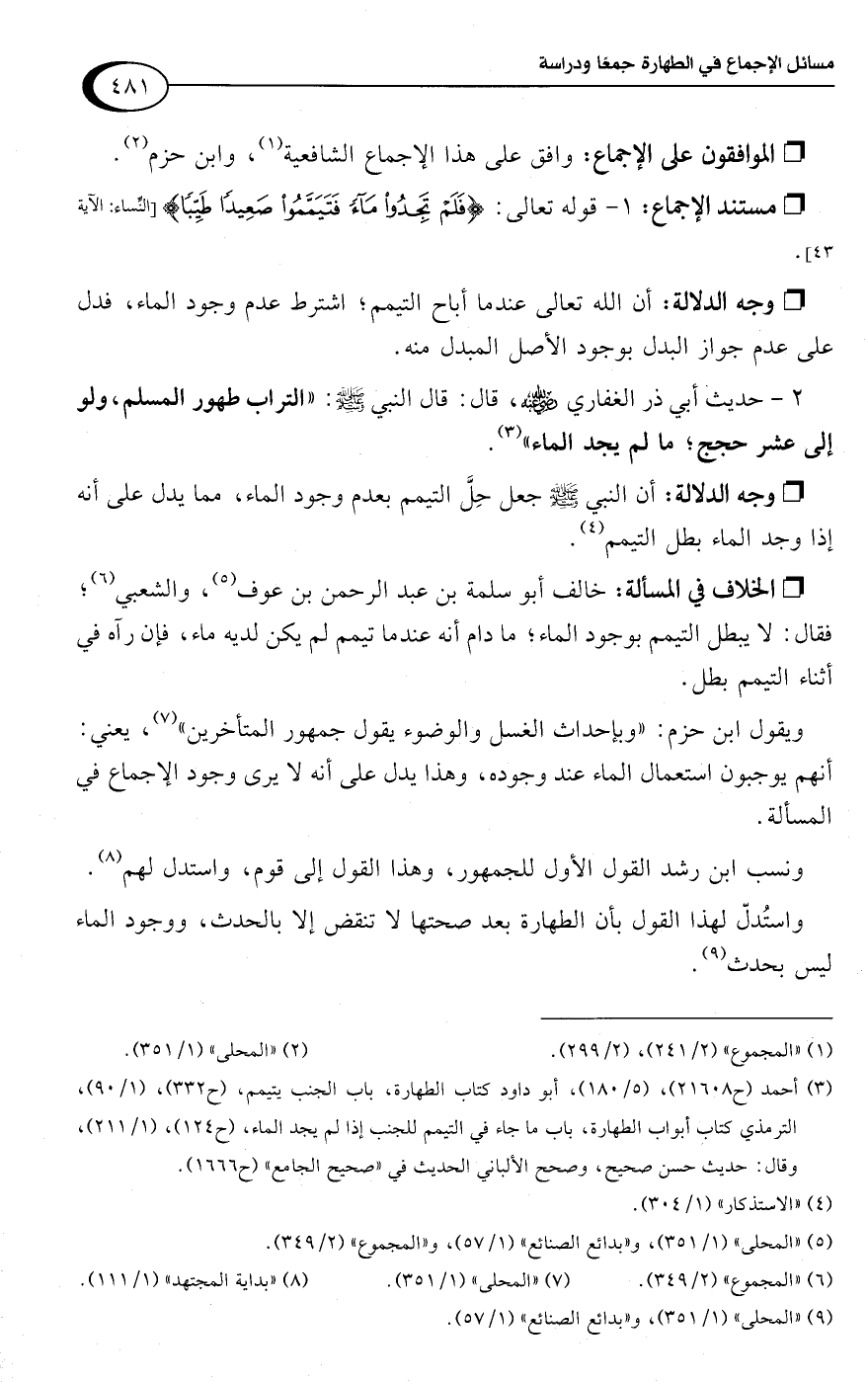 (¬5) "المحلى" (1/ 351)، و"بدائع الصنائع" (1/ 57)، و"المجموع" (2/ 349).