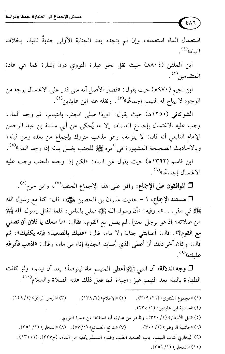 ابن قاسم (1392 هـ) حيث يقول عن الماء: "لكن إذا وجده الجنب وجب عليه الاغتسال إجماعًا" (¬6).