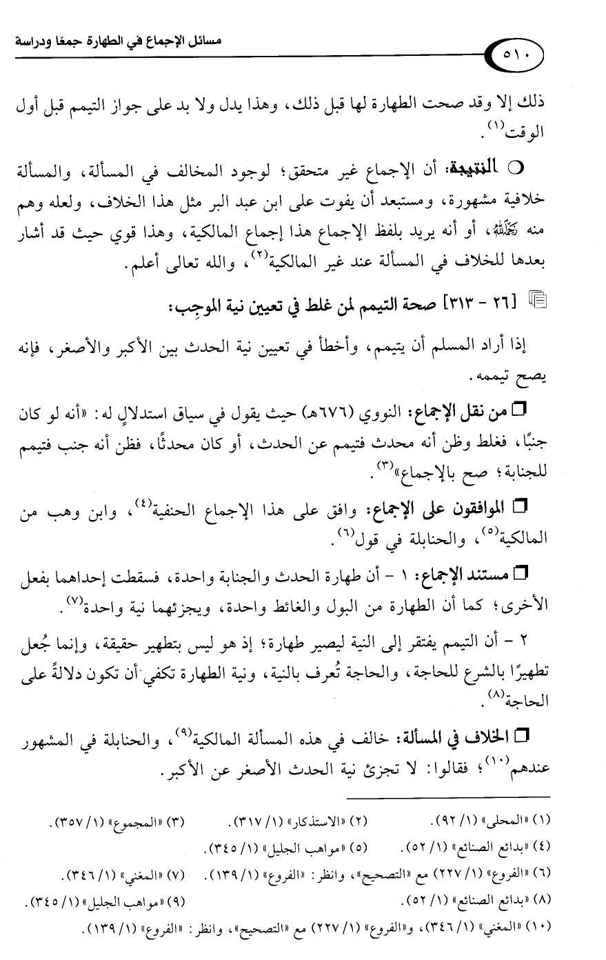 • من نقل الإجماع: النووي (676 هـ) حيث يقول في سياق استدلالٍ له: "أنه لو كان جنبًا، فغلط وظن أنه محدث فتيمم عن الحدث، أو كان محدثًا، فظن أنه جنب فتيمم للجنابة؛ صح بالإجماع" (¬3).