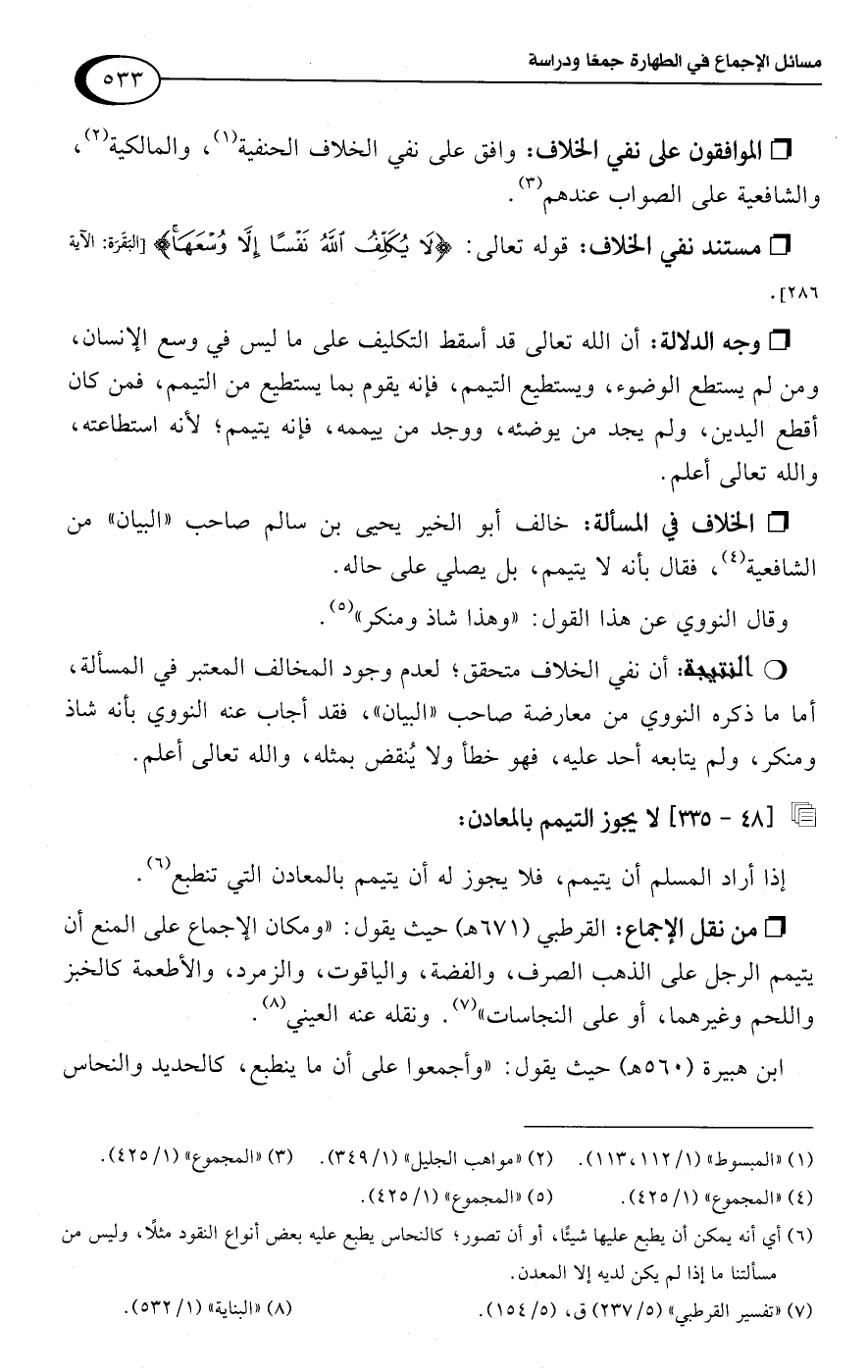 • مستند نفي الخلاف: قوله تعالى: {لَا يُكَلِّفُ اللَّهُ نَفْسًا إِلَّا وُسْعَهَا} [البقرة: 286].