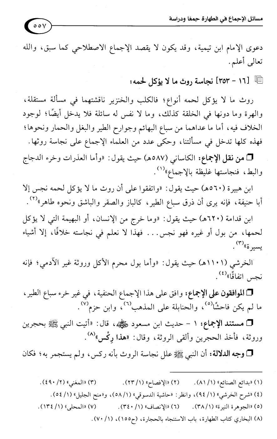 • الموافقون على الإجماع: وافق على هذا الإجماع الحنفية، في غير خرء سباع الطير، ما لم يكن فاحشًا (¬5)، والحنابلة على المذهب (¬6)، وابن حزم (¬7).