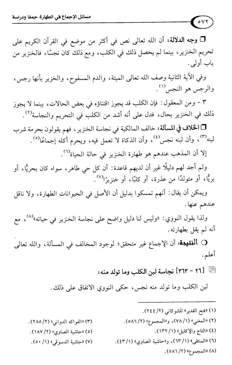 ولذا يقول النووي: "وليس لنا دليل واضح على نجاسة الخنزير في حياته" (¬8)، مع أنه لم يقل بطهارته.Rأن الإجماع غير متحقق؛ لوجود المخالف في المسألة، واللَّه تعالى أعلم.