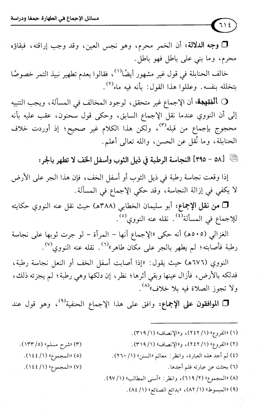 • من نقل الإجماع: أبو سليمان الخطابي (388 هـ) حيث نقل عنه النووي حكايته للإجماع في المسألة (¬4). نقله عنه النووي (¬5).