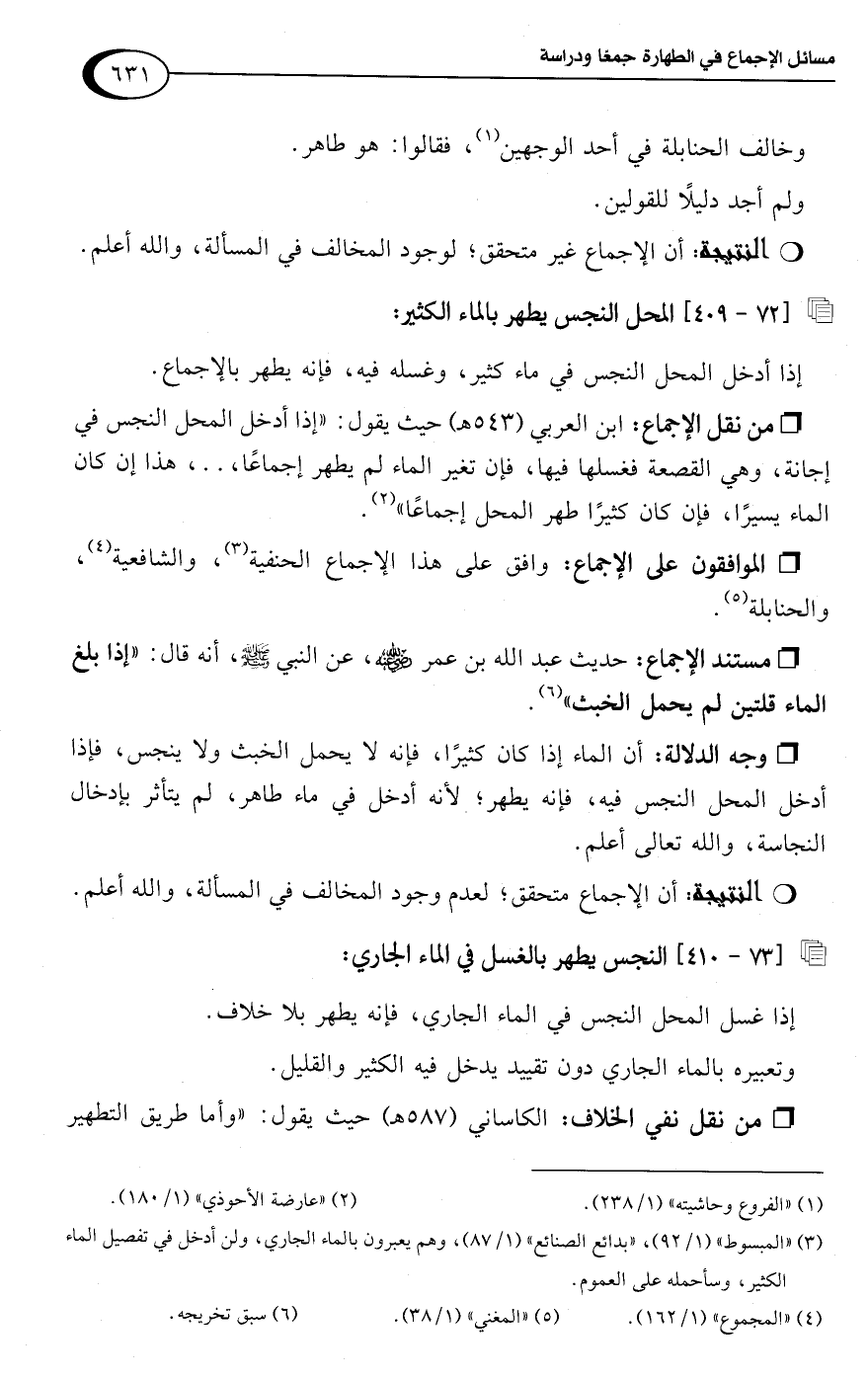 (¬3) "المبسوط" (1/ 92)، "بدائع الصنائع" (1/ 87)، وهم يعبرون بالماء الجاري، ولن أدخل في تفصيل الماء الكثير، وسأحمله على العموم.