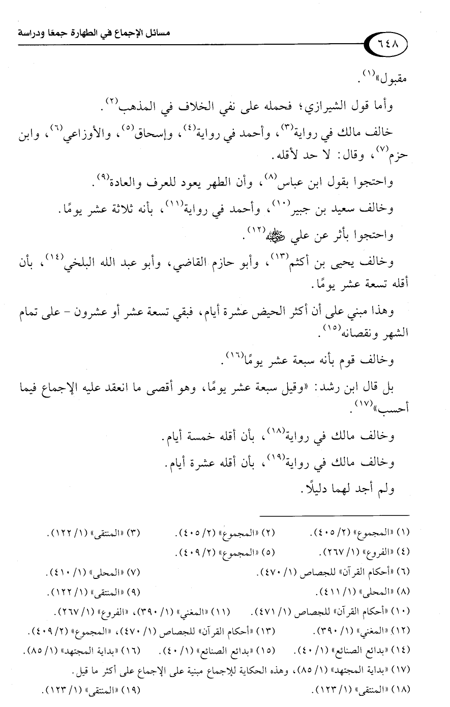 (¬17) "بداية المجتهد" (1/ 85)، وهذه الحكاية للإجماع مبنية على الإجماع على أكثر ما قيل.