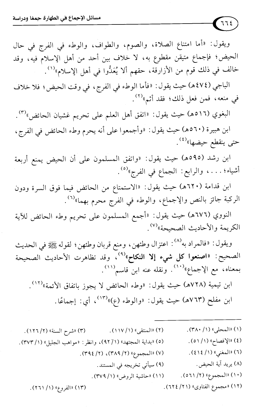 ابن تيمية (728 هـ) حيث يقول: "وطء الحائض لا يجوز باتفاق الأئمة" (¬12).