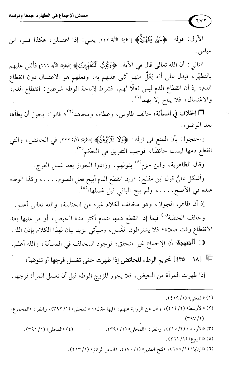 وخالف الحنفية (¬6) فيما إذا انقطع دمها لتمام أكثر مدة الحيض، أو مر عليها بعد الانقطاع وقت صلاة؛ فلا يشترطون الغُسل، وسيأتي مزيد بيان لهذا الكلام بإذن اللَّه.Rأن الإجماع غير متحقق؛ لوجود المخالف في المسألة، واللَّه أعلم.