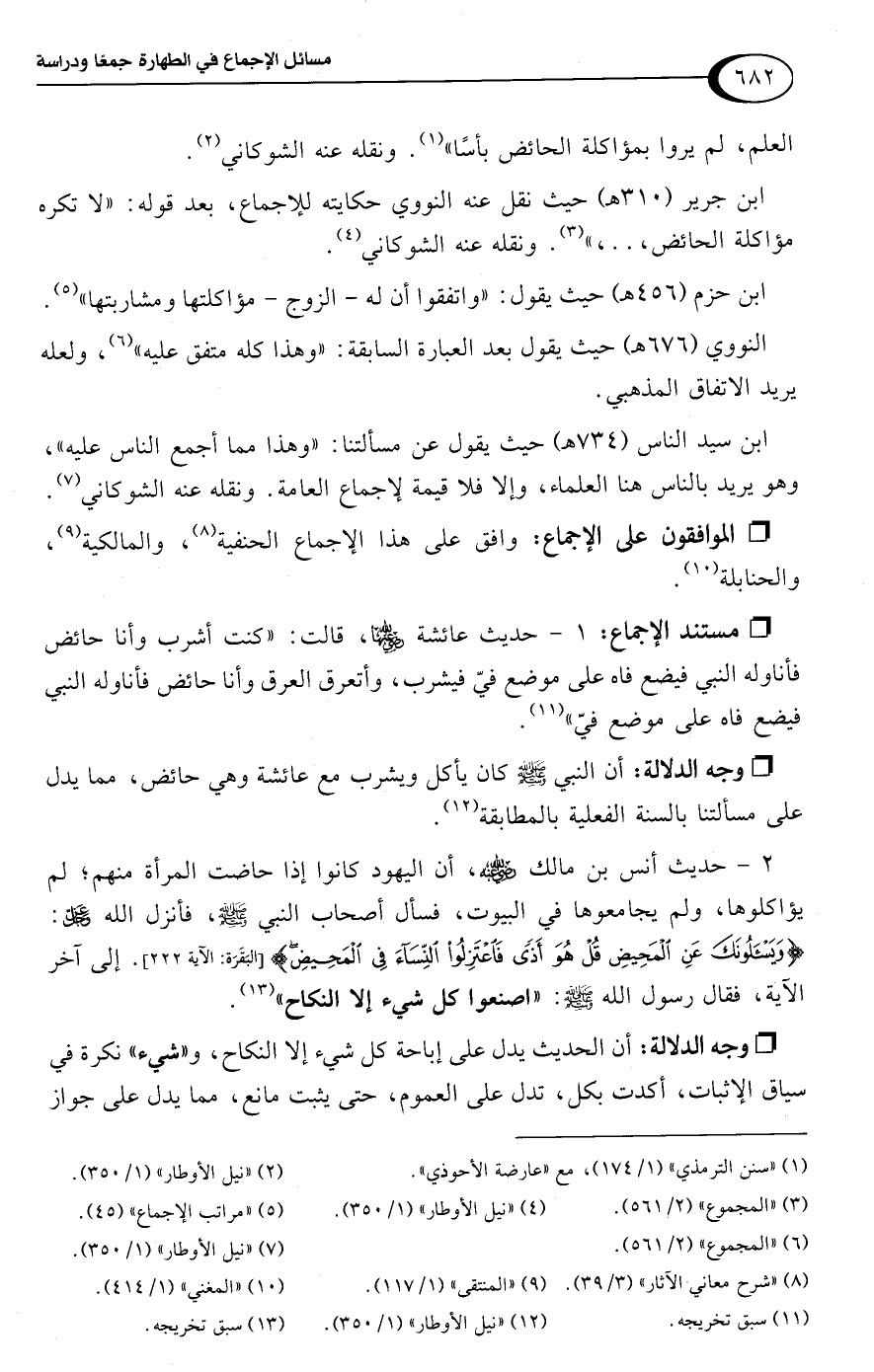 ابن جرير (310 هـ) حيث نقل عنه النووي حكايته للإجماع، بعد قوله: "لا تكره مؤاكلة الحائض، . .، " (¬3). ونقله عنه الشوكاني (¬4).