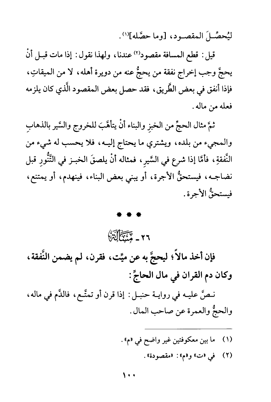 قيل: قطع المسافة مقصود عندنا، ولهذا نقول: إذا مات قبل أن يحج وجب إخراج نفقة من يحج عنه من دويرة أهله، لا من الميقات، فإذا أنفق في بعض الطريق، فقد حصل بعض المقصود الذي كان يلزمه فعله من ماله.