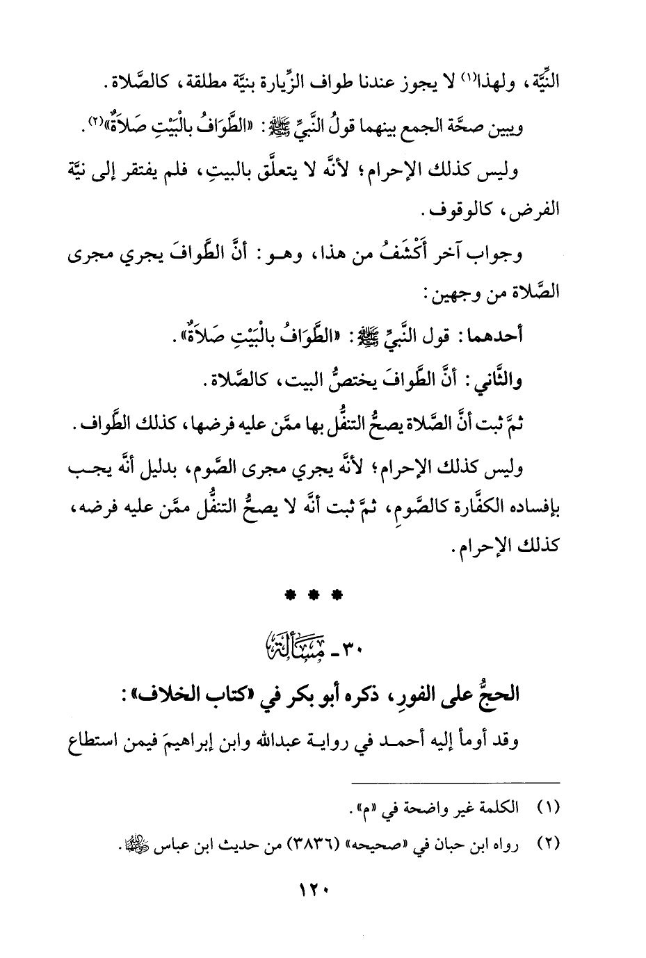 أحدهما: قول النبي صلى الله عليه وسلم: "الطواف بالبيت صلاٌة".