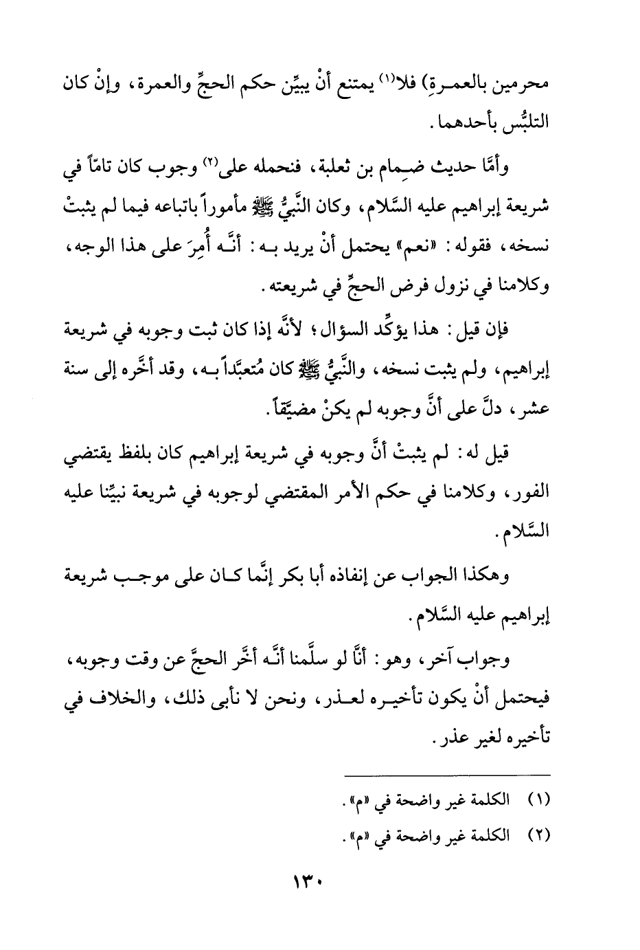 فإن قيل: هذا يؤكد السؤال، لأنه إذا كان ثبت وجوبه في شريعة إبراهيم، ولم يثبت نسخه، والنبي صلى الله عليه وسلم كان متعبدًا به، وقد أخره إلى سنة عشر، دل على أن وجوبه لم يكن مضيقًا.
