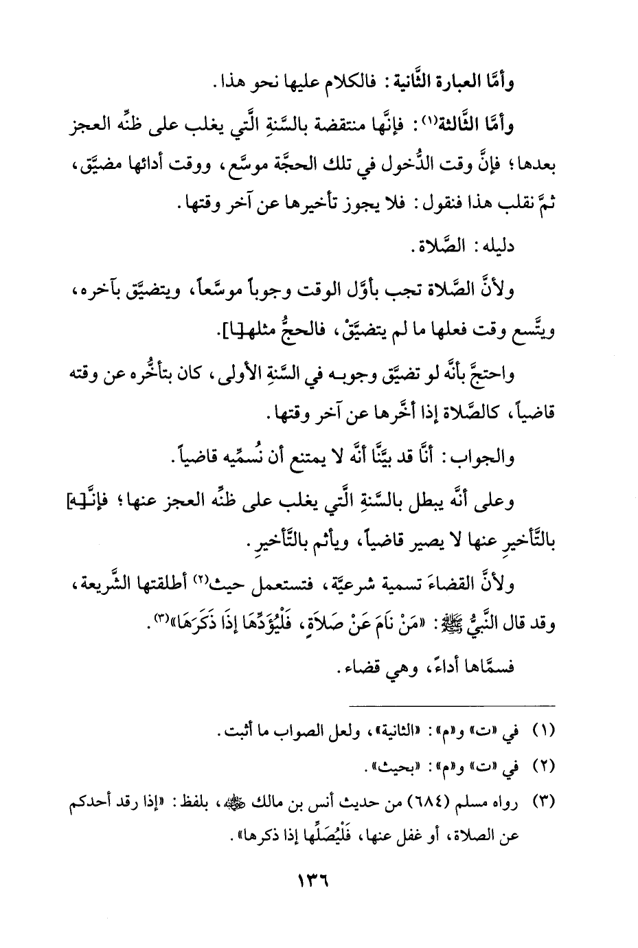 وأما الثالثة: فإنها منتقضة بالسنة التي يغلب على ظنه العجز بعدها؛ فإن وقت الدخول في تلك الحجة موسع، ووقت أدائها مضيق، ثم نقلب هذا فنقول: فلا يجوز تأخيرها عن أخر وقتها.