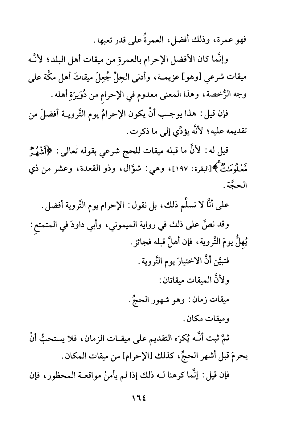 ثم ثبت أنه يكره التقديم على ميقات الزمان, فلا يستحب أن يحرم قبل أشهر الحج, كذلك [الإحرام] من ميقات المكان.