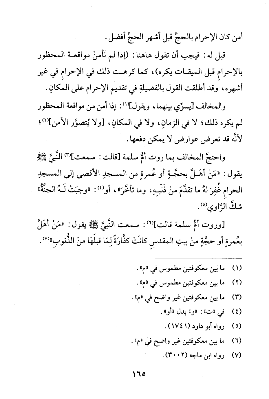 ] وروت أم سلمة قالت [: سمعت النبي صلى الله عليه وسلم يقول: ((من أهل بعمرٍة أو حجٍة من بيت المقدس كانت كفارًة لما قبلها من الذنوب)).