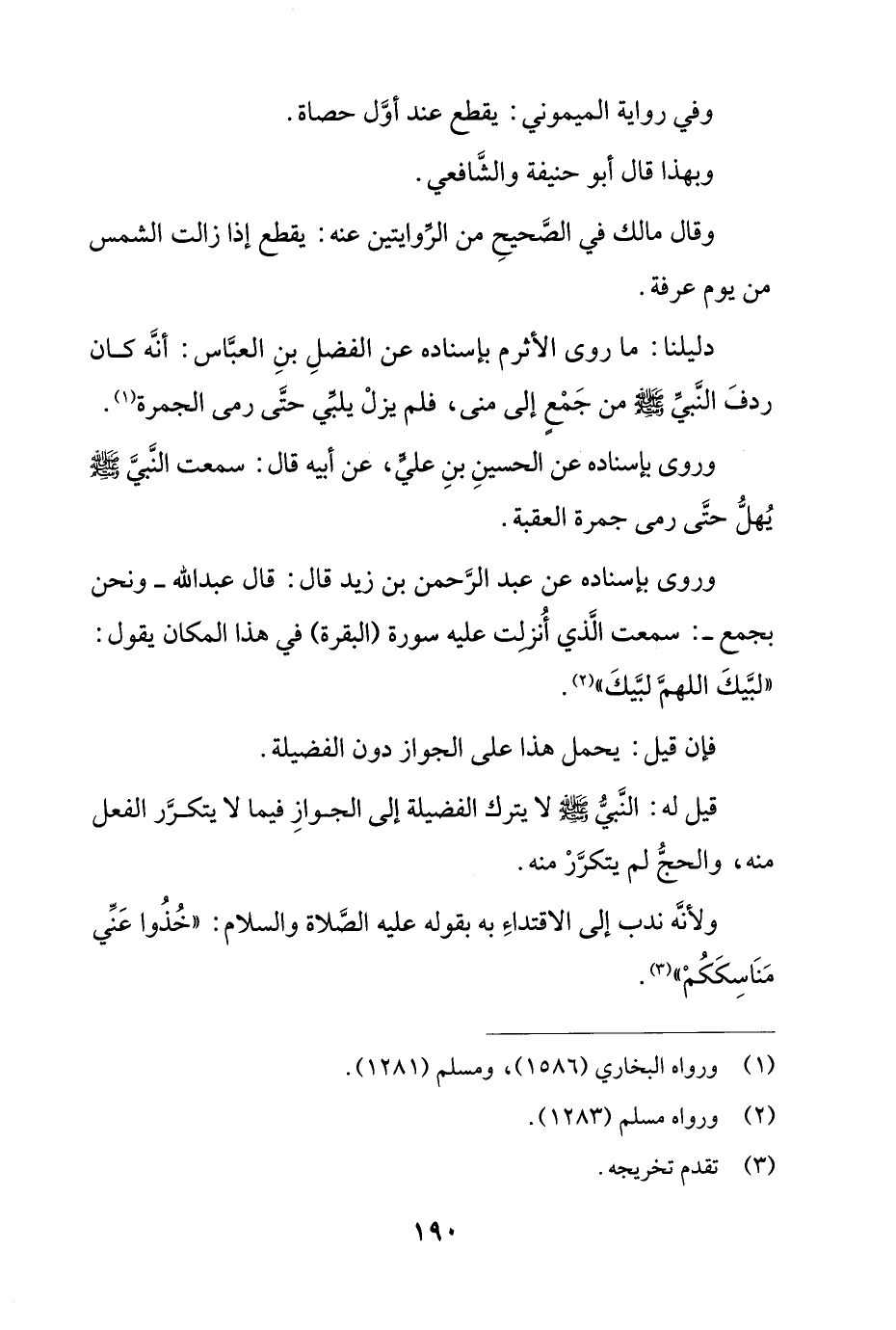 وروى بإسناده عن عبد الرحمن بن زيد قال: قال عبد الله- ونحن بجمع-: سمعت الذي أنزلت عليه سورة (البقرة) في هذا المكان يقول: ((لبيك اللهم لبيك)).