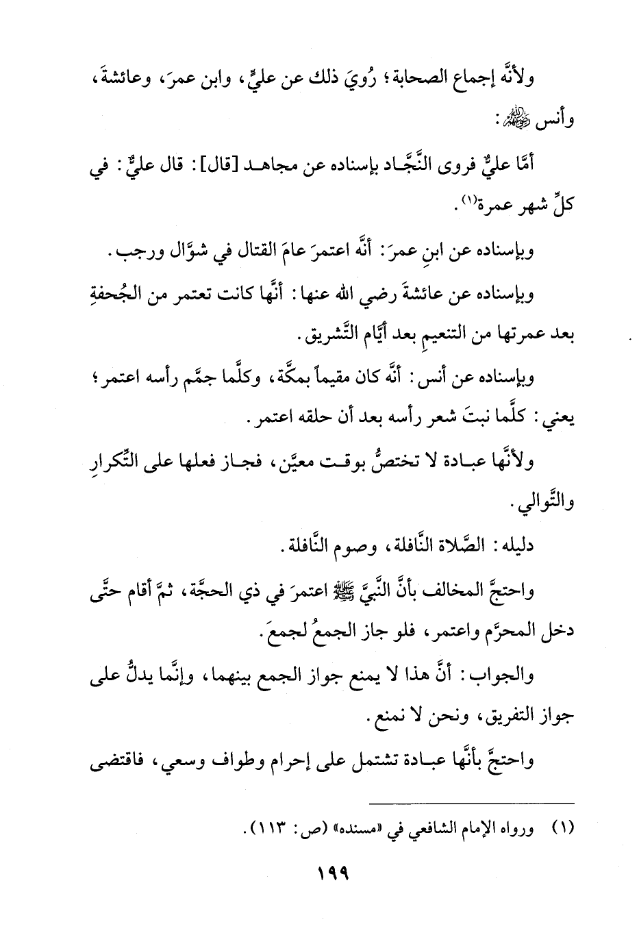 أما على فروى النجاد بإسناده عن كجاهد [قال]: قال على: في كل شهر عمرة.