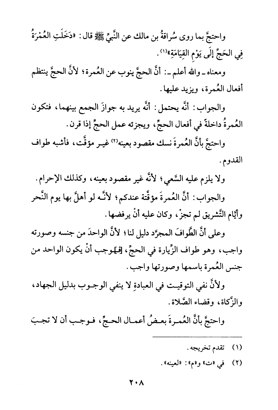 واحتج بأن العمرة نسك مقصود بعينه غير مؤقت، فأشبه طواف القدوم.