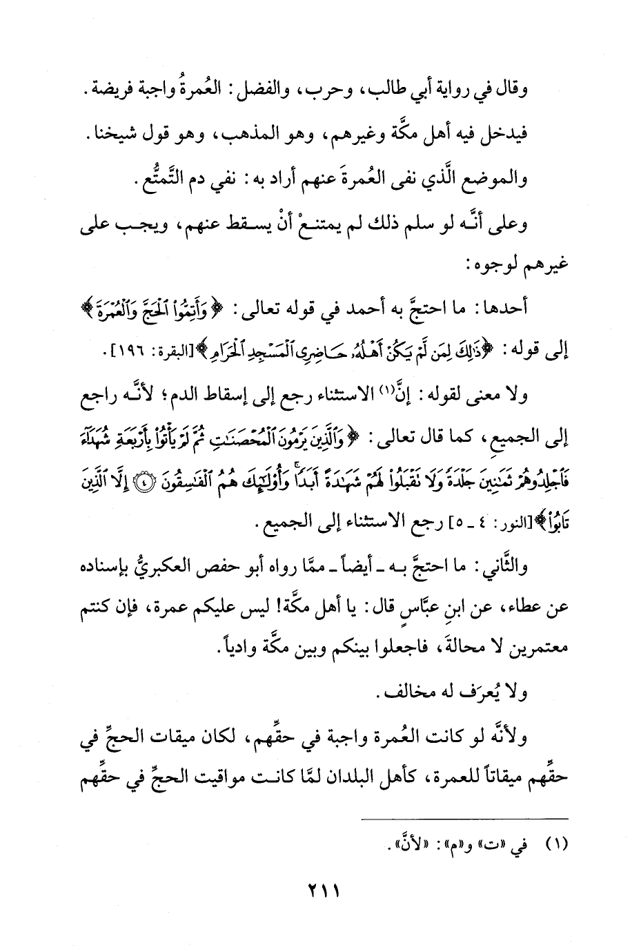 أحدها: ما احتج به أحمد في قوله تعالى: {وَأَتِمُّوا الْحَجَّ وَالْعُمْرَةَ} إلى قوله: {ذَلِكَ لِمَنْ لَمْ يَكُنْ أَهْلُهُ حَاضِرِي الْمَسْجِدِ الْحَرَامِ} [البقرة: 196].