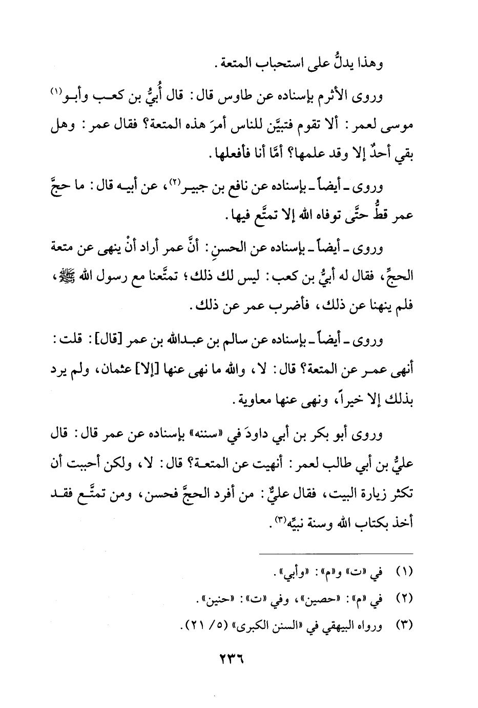 وروى- أيضًا- بإسناده عن نافع بن جبير، عن أبيه قال: ما حج عمر قط حتى توفاه الله إلا تمتع فيها.