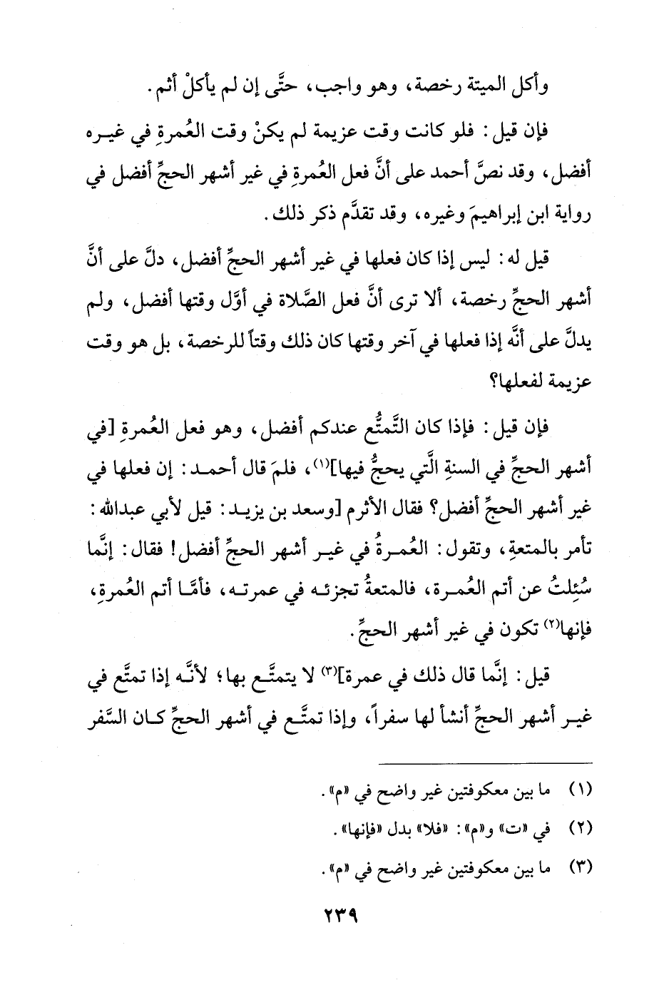 فإن قيل: فإذا كان التمتع عندكم أفضل، وهو فعل العمرة [في أشهر الحج في السنة التي يحج فيها]، فلم قال أحمد: إن فعلها في غير أشهر الحج أفضل؟ فقال الأثرم [وسعد بن يزيد: قيل لأبي عبد الله: تأمر بالمتعة، وتقول: العمرة في غير أشهر الحج أفضل! فقال: إنما سئلت عن أتم العمرة، فالمتعة تجزئه في عمرته، فأما أتم العمرة، فإنها تكون في غير أشهر الحج.
