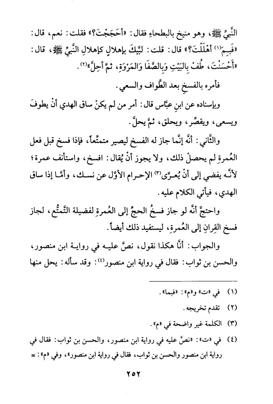والثاني: أنه إنما جاز له الفسخ ليصير متمتعاً، فإذا فسخ قبل فعل العمرة لم يحصل ذلك، ولا يجوز أن يقال: افسخ، واستأنف عمرة؛ لأنه يفضي إلى أن يعرى الإحرام الأول عن نسك، وأما إذا ساق الهدي، فيأتي الكلام عليه.