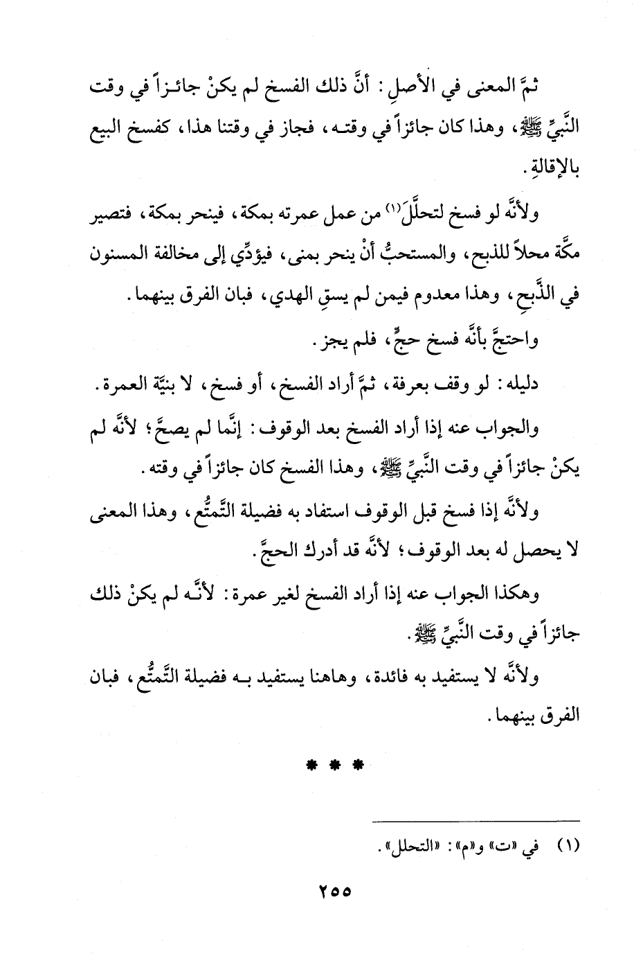 والجواب عنه إذا أراد الفسخ بعد الوقوف: إنما لم يصح؛ لأنه لم يكن جائزاً في وقت النبي "صل الله عليه وسلم"، وهذا الفسخ كان جائزاً في وقته.