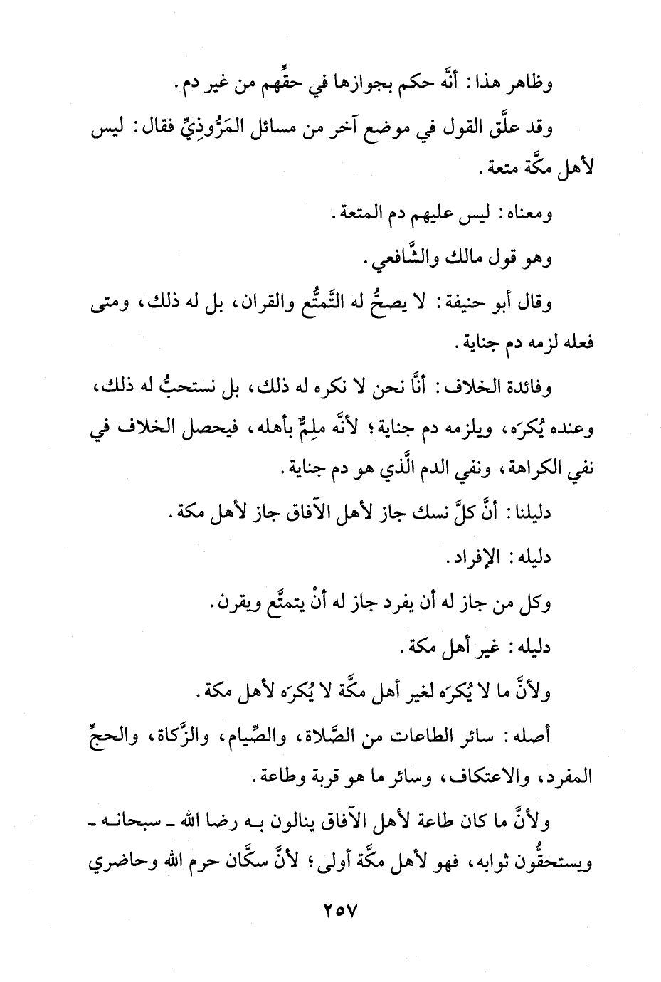 وقد علق القول في موضع آخر من مسائل المروذي فقال: ليس لأهل مكة متعة.
