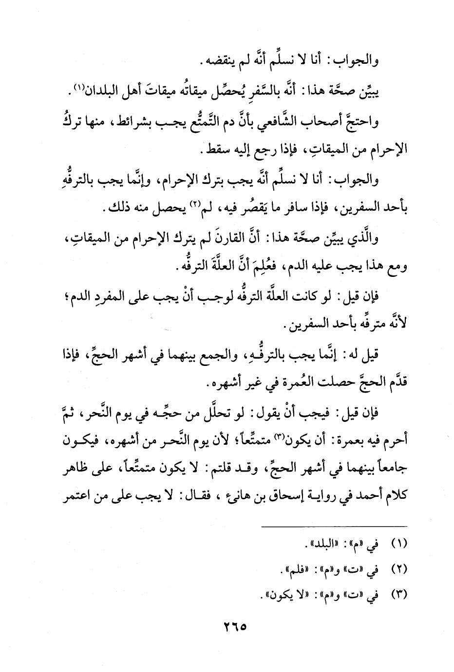والجواب: أنا لا نسلم أنه يجب بترك الإحرام، وإنما يجب بالترفه بأحد السفرين، فإذا سافر ما يقصر فيه، لم يحصل منه ذلك.