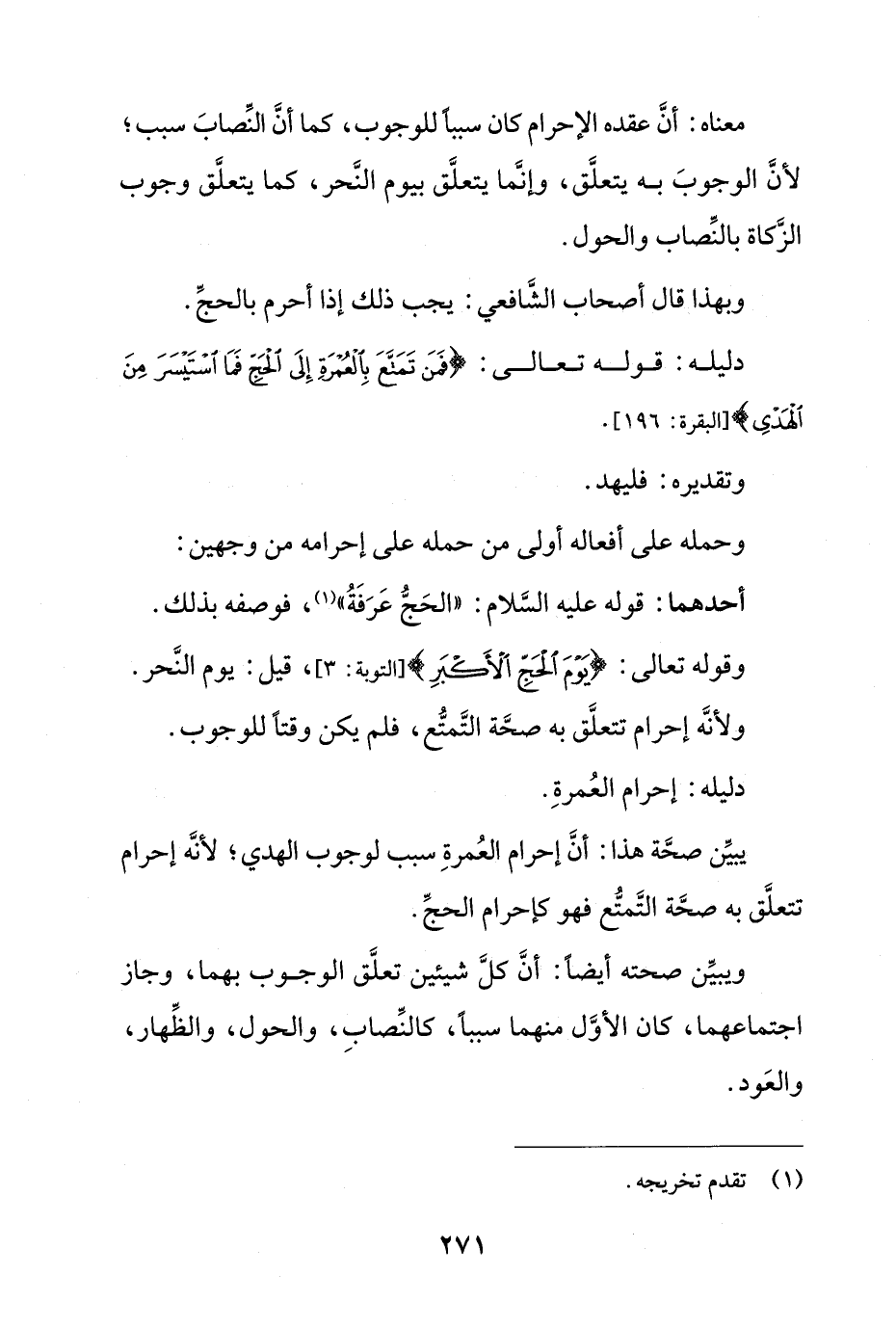 معناه: أن عقده الإحرام كان سبباً للوجوب، كما أن النصاب سبب؛ لأن الوجوب به يتعلق، وإنما يتعلق بيوم النحر، كما يتعلق وجوب الزكاة بالنصاب والحول.