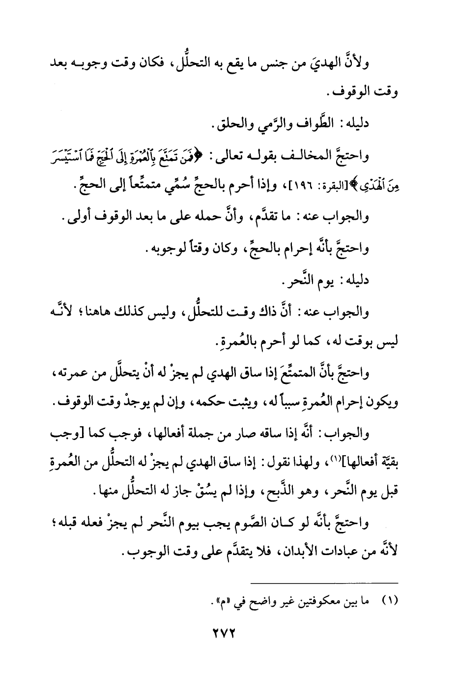 واحتج بأن المتمتع إذا ساق الهدي لم يجز له أن يتحلل من عمرته، ويكون إحرام العمرة سبباً له، ويثبت حكمه، وإن لم يوجد وقت الوقوف.