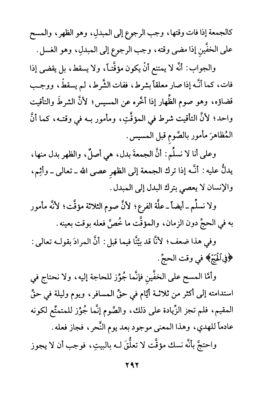 ولا نسلم - أيضاً - علة الفرع؛ لأن صوم الثلاثة مؤقت؛ لأنه مأمور به في الحج دون الزمان، والمؤقت ما خص فعله بوقت بعينه.
