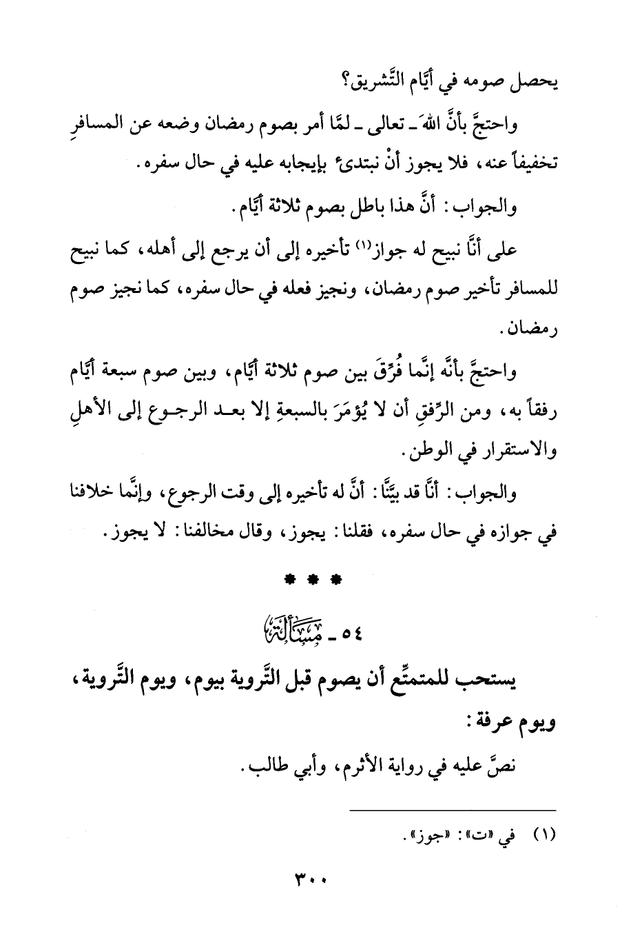 والجواب: أنا في بينا: أن له تأخيره إلى وقت الرجوع، وإنما خلافنا في جوازه في حال سفره، فقلنا: يجوز، وقال مخالفنا: لا يجوز.