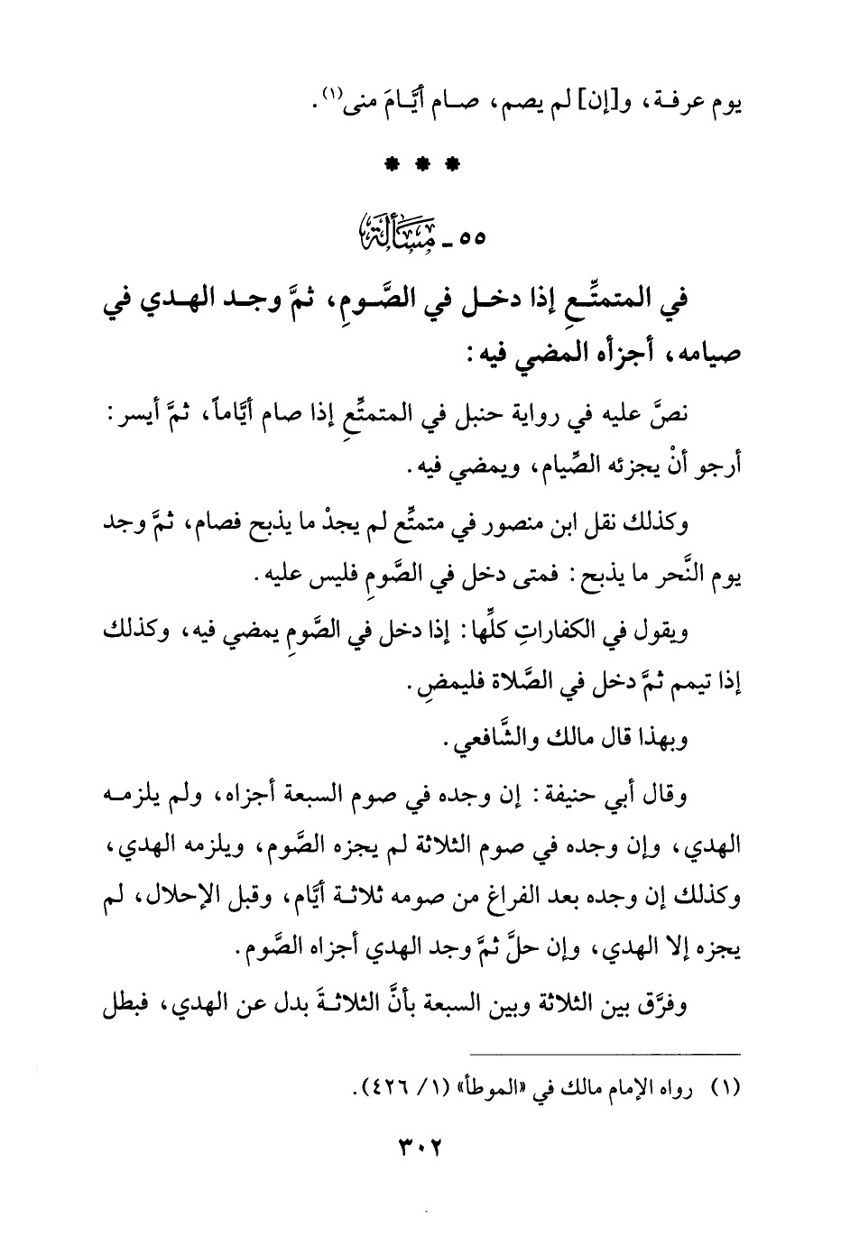 وكذلك نقل ابن منصور في متمتع لم يجد ما يذبح فصام، ثم وجد يوم النحر ما يذبح: فمتى دخل في الصوم فليس عليه.