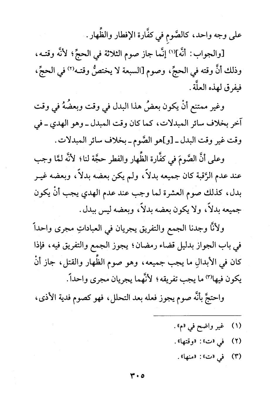 وغير ممتنع أن يكون بعض هذه البدل في وقت وبعضه في وقت آخر بخلاف سائر المبدلات، كما كان وقت المبدل - وهو الهدي - في وقت غير وقت البدل -] و [هو الصوم - بخلاف سائر المبدلات.