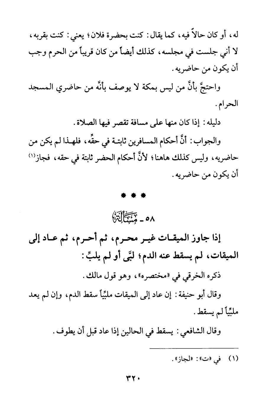 له، أو كان حالاً فيه، كما يقال: كنت بحضرة فلان؛ يعني: كنت بقربه، لا أني جلست في مجلسه، كذلك أيضاً من كان قريباً من الحرم وجب أن يكون من حاضريه.