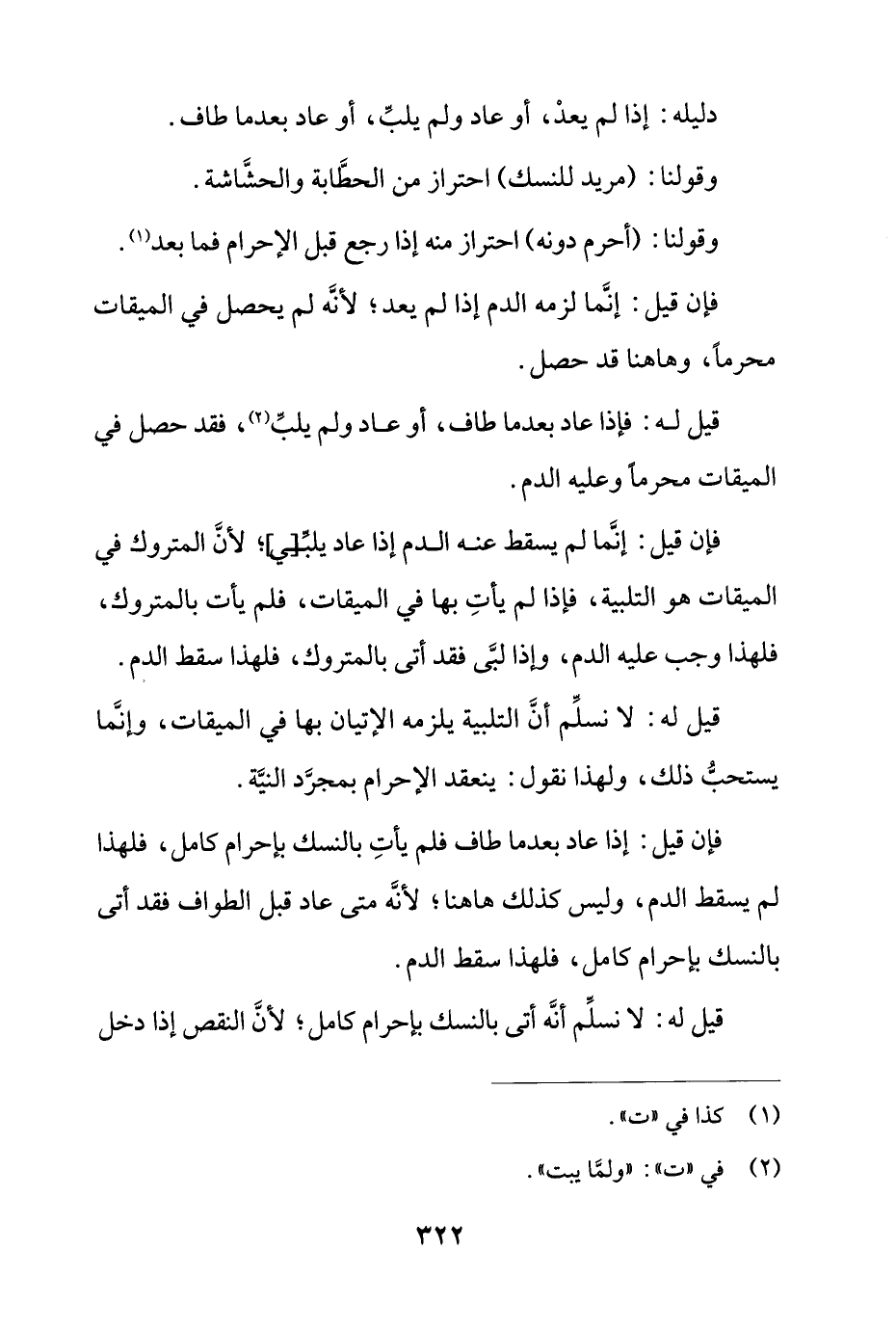 دليله: إذا لم يعد، أو عاد ولم يلب، أو عاد بعدما طاف.