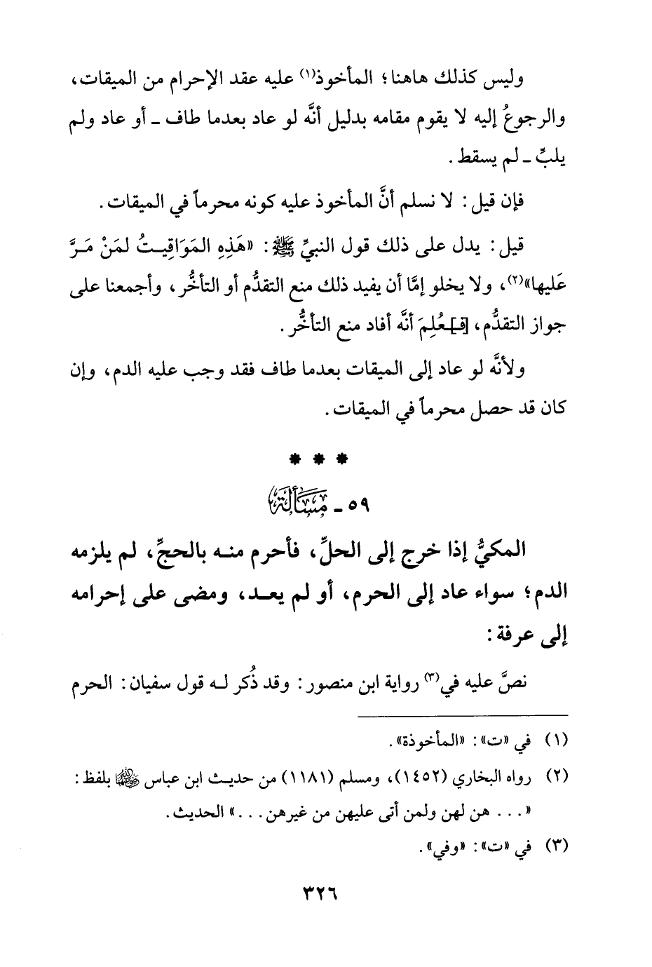 وليس كذلك هاهنا؛ المأخوذ عليه عقد الأحرام من الميقات، والرجوع إليه لا يقوم مقامة بدليل أنه لو عاد بعدما طاف - أو عاد ولم يلب - لم يسقط.