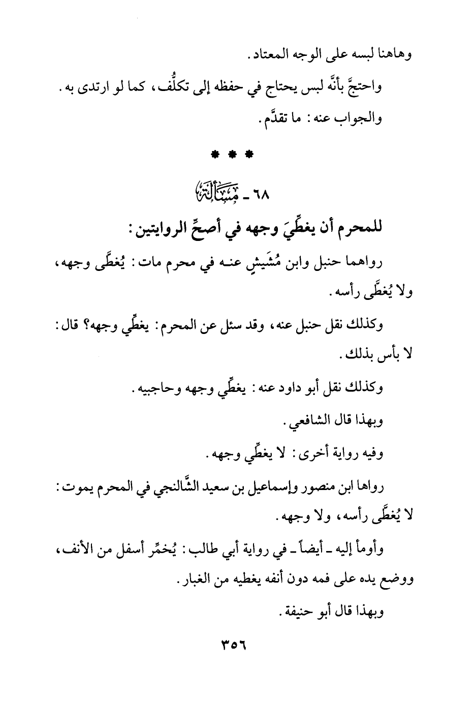 للمحرم أن يغطي وجهه في أصح الروايتين: