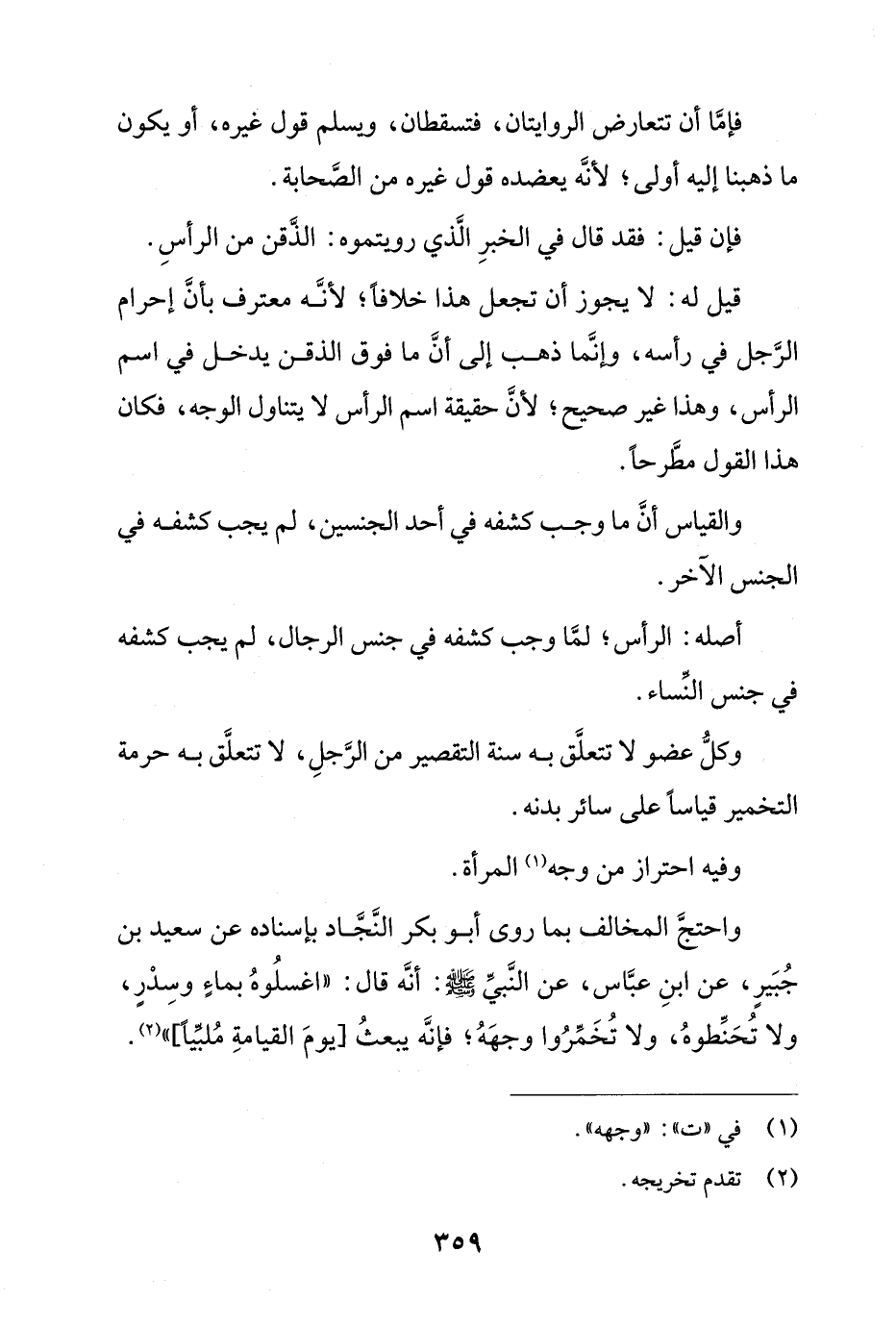قيل له: لا يجوز أن تجعل هذا خلافاً؛ لأنه معترف بأن إحرام الرجل في رأسه، وإنما ذهب إلى أن ما فوق الذقن يدخل في اسم الرأس، وهذا غير صحيح؛ لأن حقيقة اسم الرأس لا يتناول الوجه، فكان هذا القول مطرحاً.