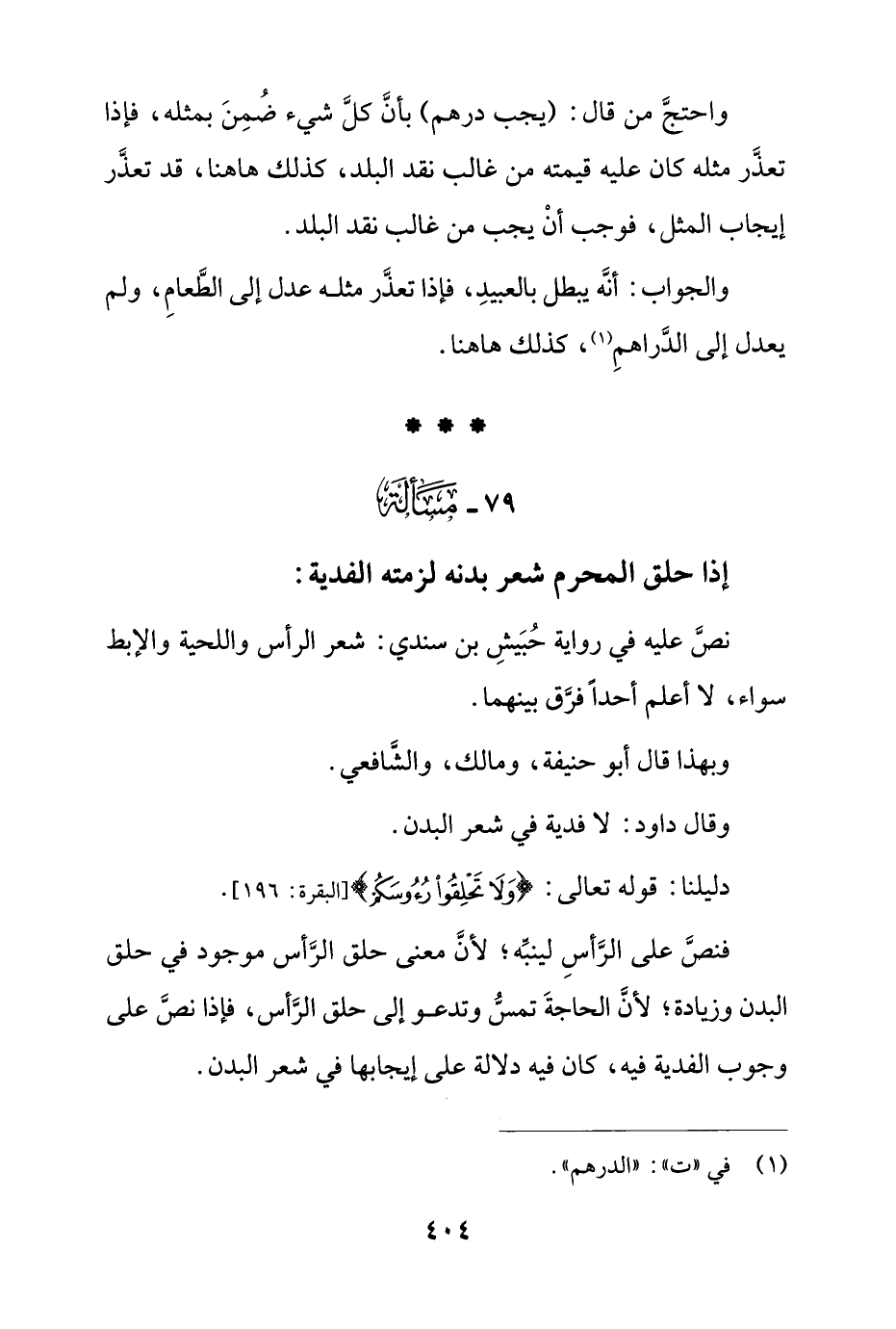والجواب: أنه يبطل بالعبيد، فإذا تعذر مثله عدل إلى الطعام، ولم يعدل إلى الدراهم، كذلك هاهنا.