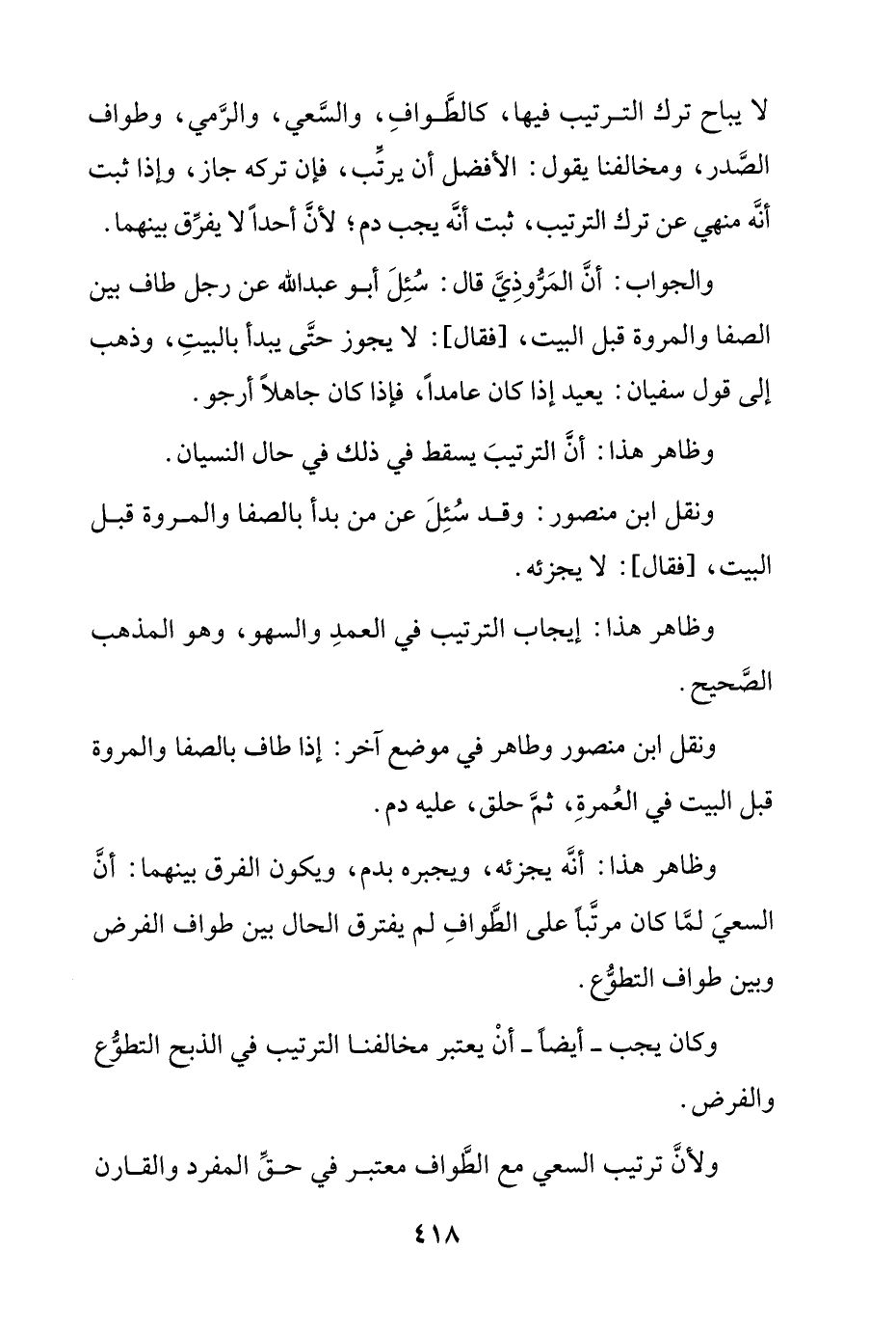 وظاهر هذا: إيجاب الترتيب في العمد والسهو، وهو المذهب الصحيح.