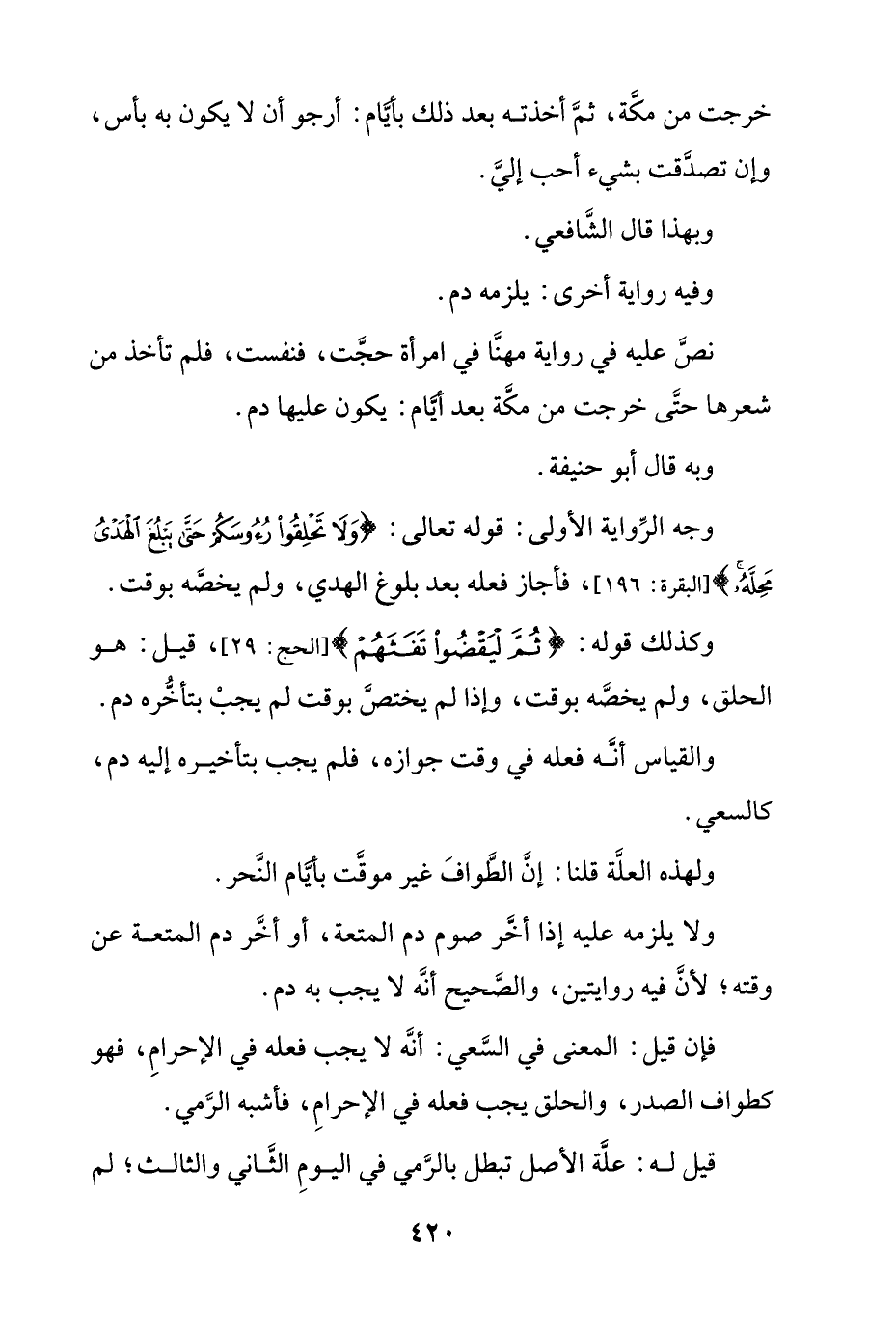 ولهذه العلة قلنا: إن الطواف غير موقت بأيام النحر.
