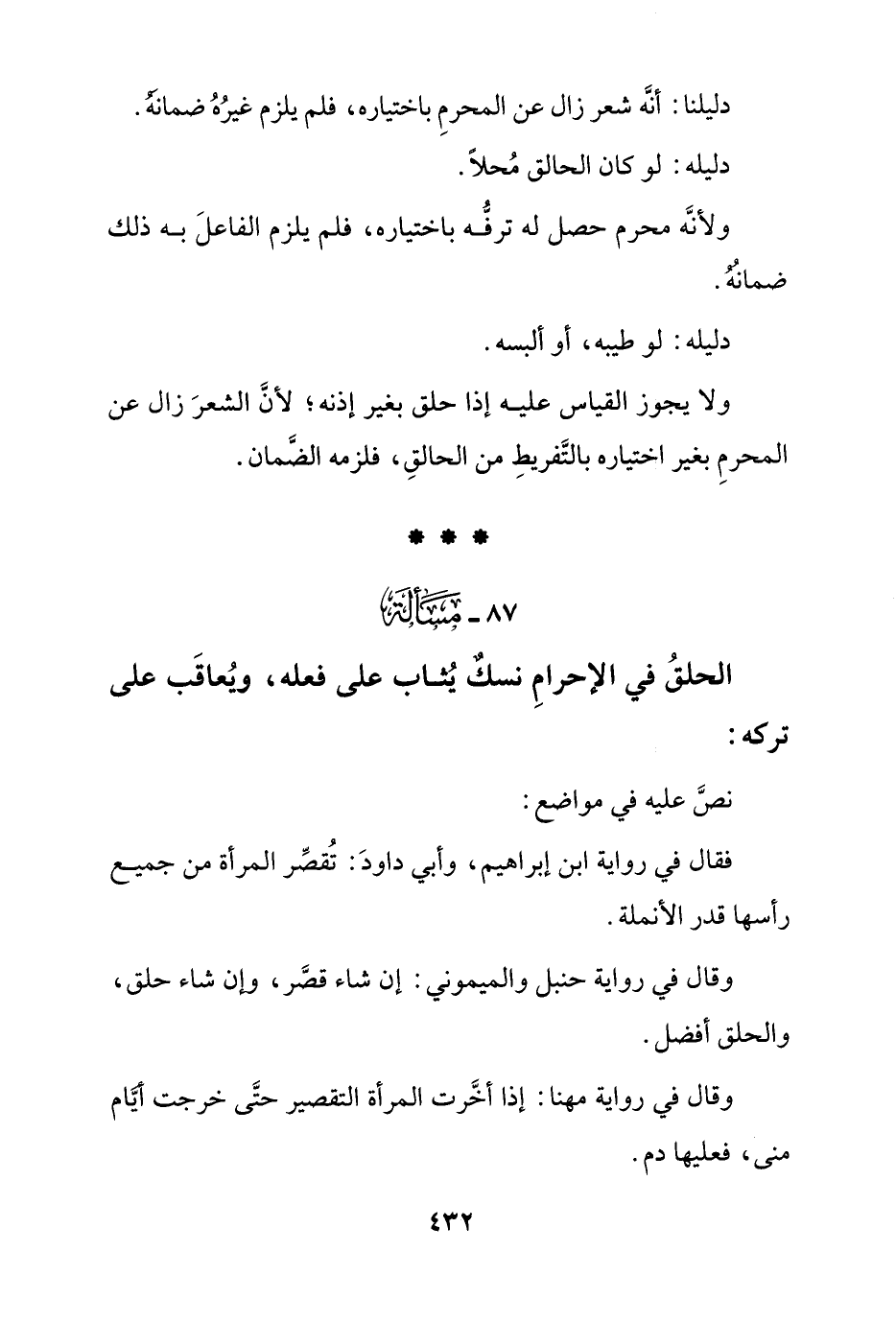 الحلق في الإحرام نسك يثاب على فعله ويعاقب على تركه:
