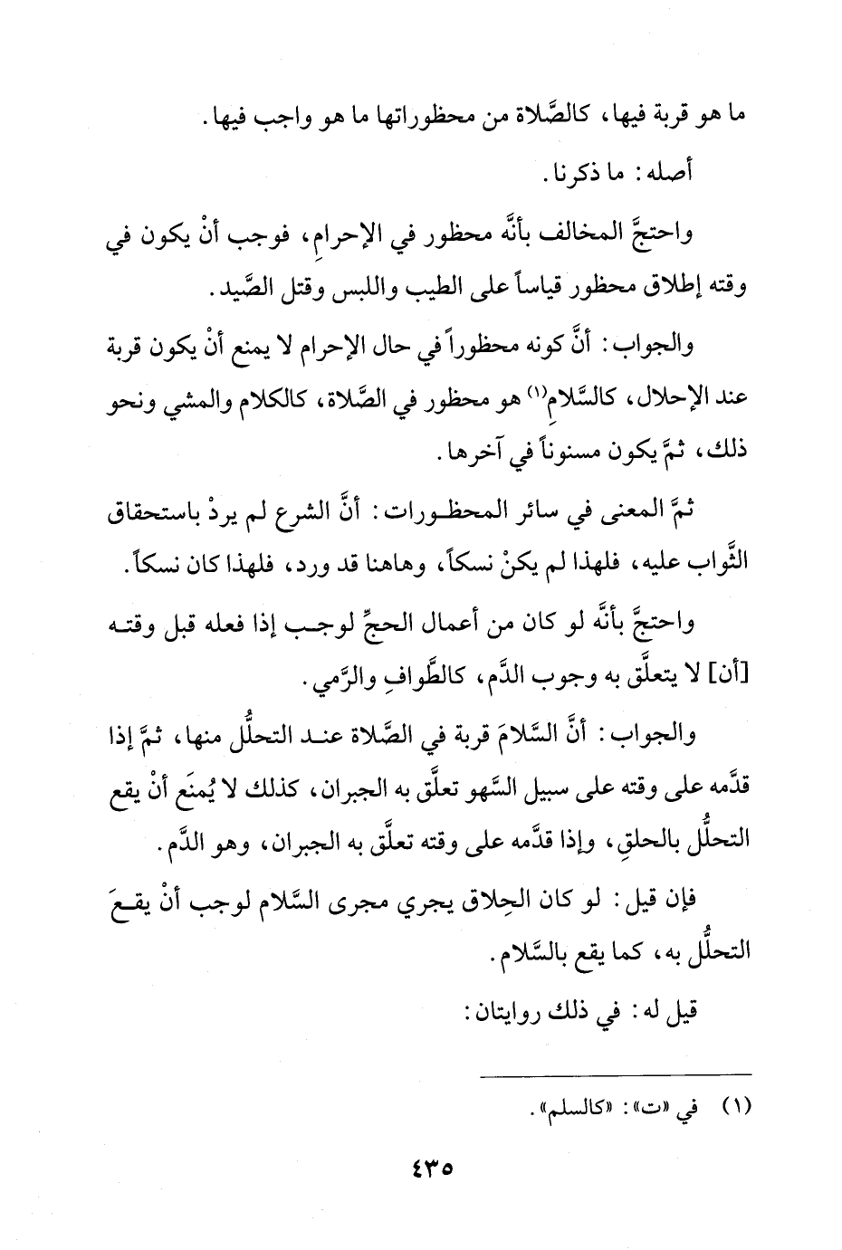 والجواب: أن كونه محظورًا ف حال الإحرام لا يمنع أن يكون قربة عند الإحلال, كالسلام هو محظور في الصلاة, كالكلام والمشي ونحو ذلك ثم يكون مسنونًا في آخرها.