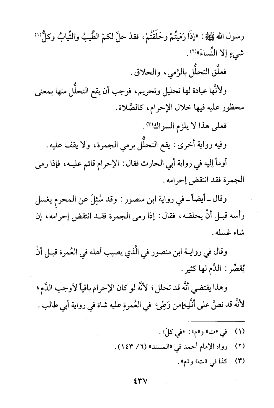 رسول الله صلى الله عليه وسلم: ((إذا رميتم وحلقتم, فقد حل لكم الطيب والثياب وكل شيء إلا النساء)).
