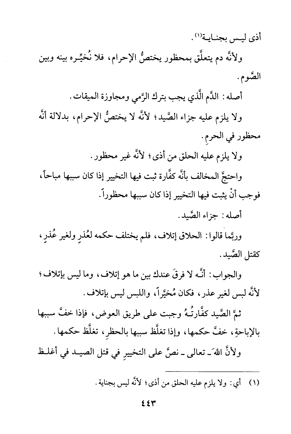 وربما قالوا: الحلاق إتلاف, فلم يختلف حكمه لعذٍر, كقتل الصيد.