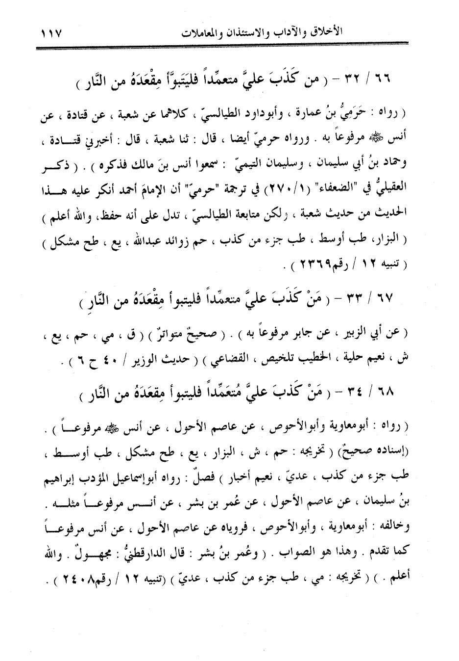 68/ 34 - (مَنْ كَذبَ عليَّ مُتعَمِّدًا فليتبوأ مِقعَدَهُ من النَّار).