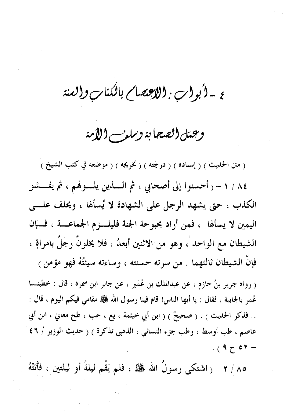 4 - أبواب: الاعتصام بالكتاب واالسنة وعمل الصحابة وسلف الأمة