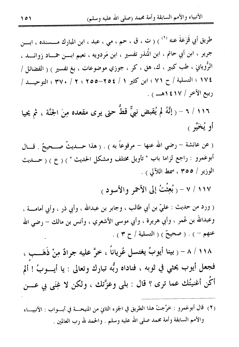 116/ 6 - (إنَّهُ لم يُقبض نبيٌّ قطُّ حتى يرى مقعده مِنَ الجنَّة، ثم يحيا أو يُخَيَّر).